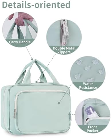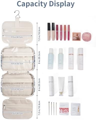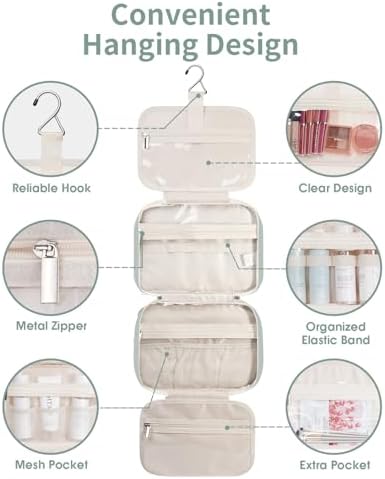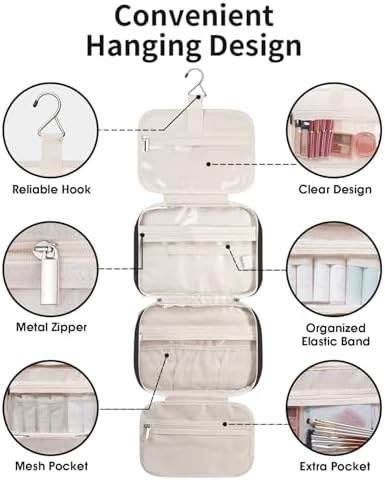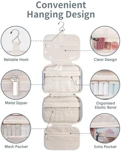 – Fähigkeiten: Problemloser Platz für große Toilettenartikel, Shampoo, Spülung, Lotion, Zahnpasta, Zahnbürsten, Haarbürste, Rasierset und weitere kleine Artikel.