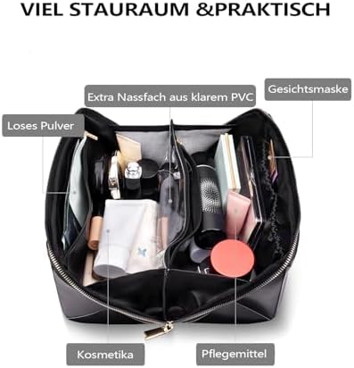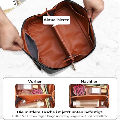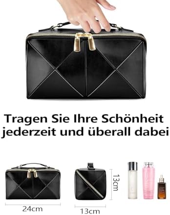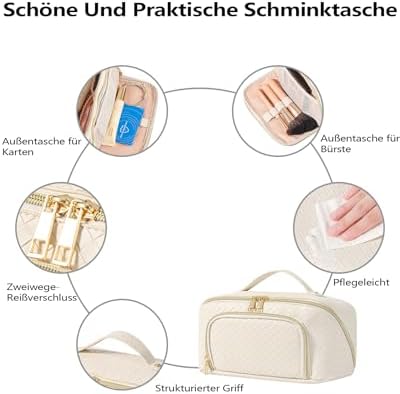 Unsere Make Up Tasche ist aus hochwertigem recyceltem Lederimitat gefertigt. Sie ist schick, stillvoll und wasserabweisend, leicht zu reinigen und bietet maximalen Komfort. Diese Tasche ist sowohl für die Arbeit als auch für das Wochenende der perfekte Begleiter.