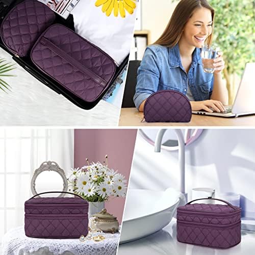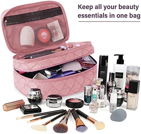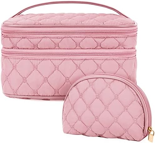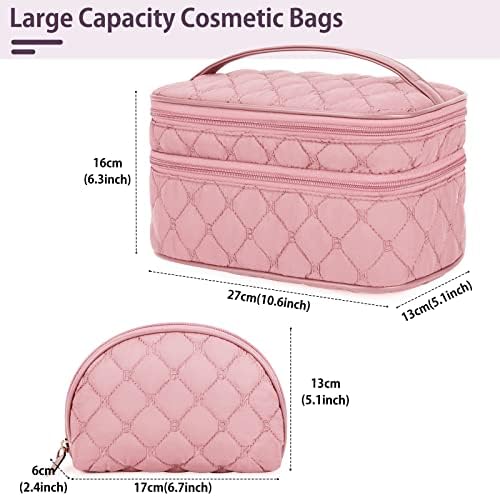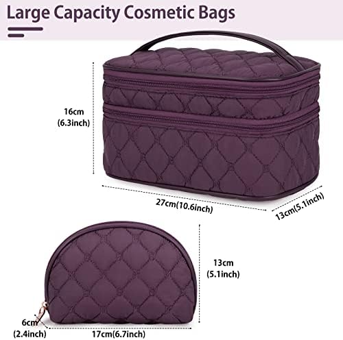 Die Kosmetiktasche bietet Platz für mehr als nur Make-up und Pinsel. Die Haupttasche mit einem Ausmaß von 27 cm x 16 cm x 13 cm (10,6 x 6,3 x 5,1 Zoll) und die Zubehör-Tasche mit 17 x 13 x 6 cm (6,7 x 5,1 x 2,4 Zoll) geben Ihnen genug Raum, Ihre gesamten Hygienezubehör und Kosmetika sicher zu lagern.