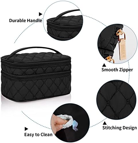 NUBILY Kosmetiktasche Damen Groß wasserdichte Reise Schminktasche Schwarz | NUBILY Doppelschicht Schminktasche Damen Ku