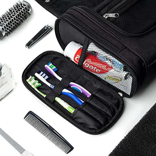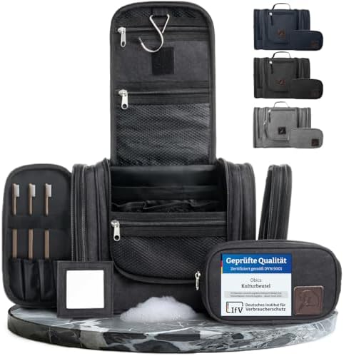 ✅ PRAGMatische ORGANISATION: Diese Kosmetik-Tasche mit großen Fächern bietet Platz für 10 verschiedene Artikel. Ein großes Hauptfach mit einem hohen Volumen wird von zwei Seitentaschen supportet, die speziell für Zahnbürsten geeignet sind. Für kleinere Utensilien gibt es genug Platz.