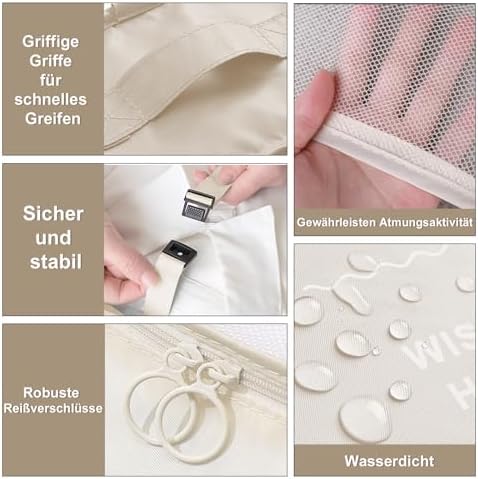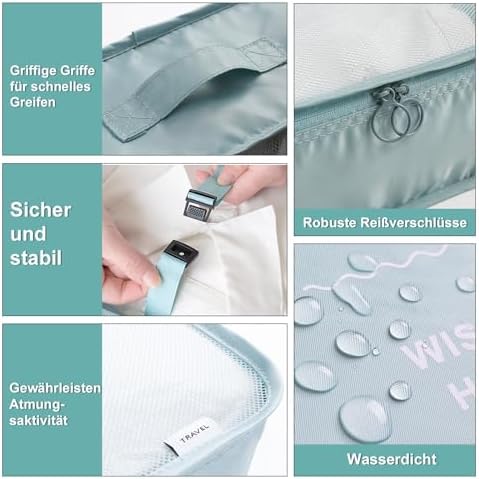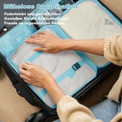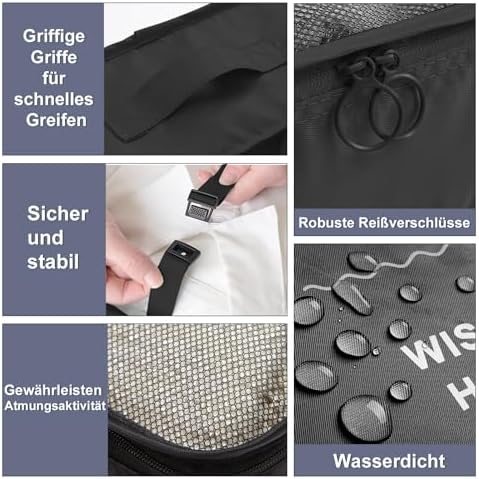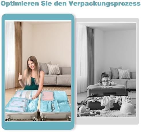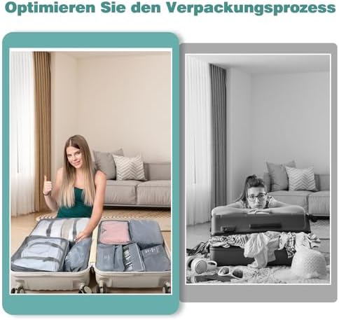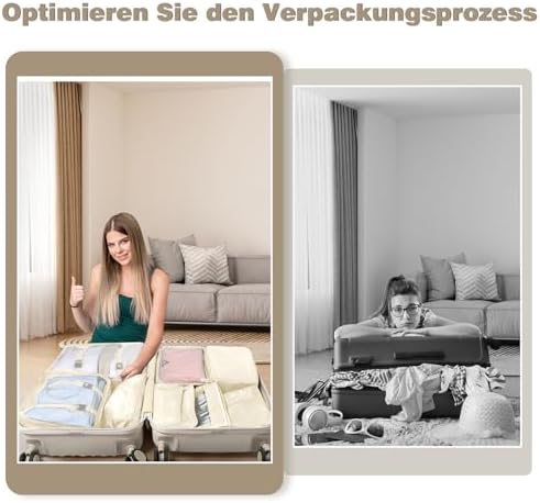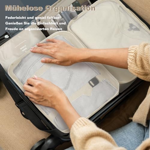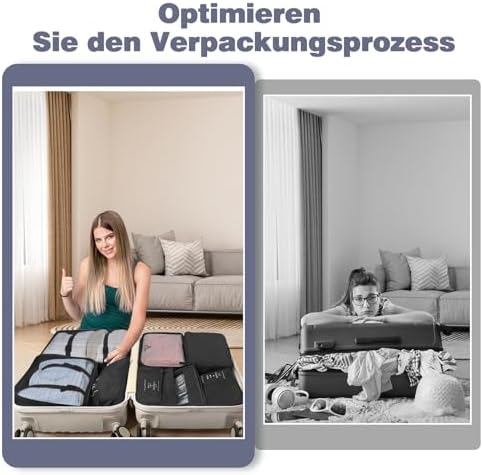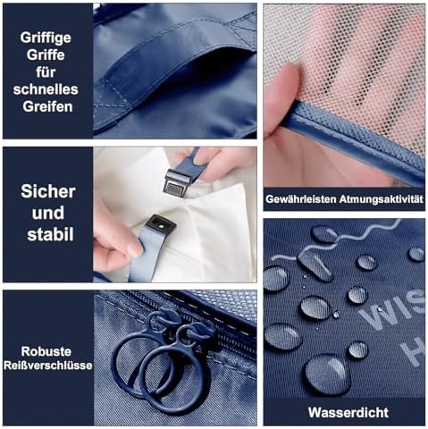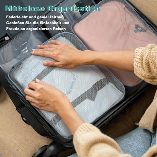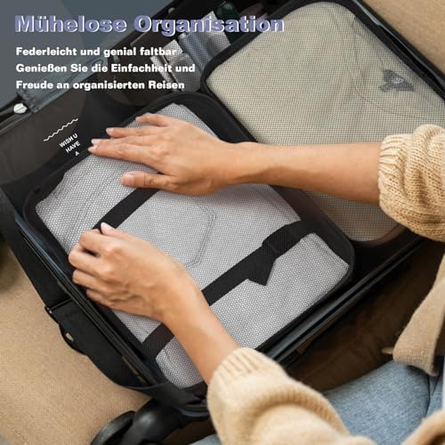 Die efficienten Taschen sorgen für einen entspannten Reisetag. Sie organisieren verschiedene Reisebekleidung und nutzen den ganzen Gepäckraum effizient. Visuelle Maschen helfen, das auszuschließen.