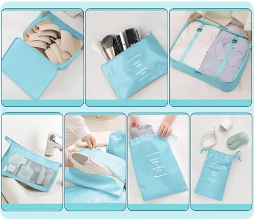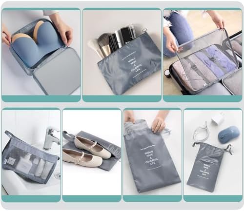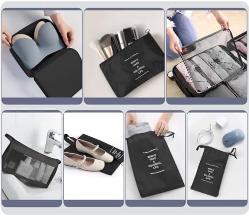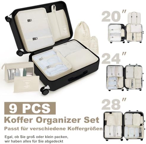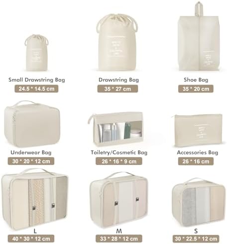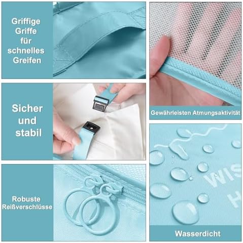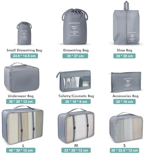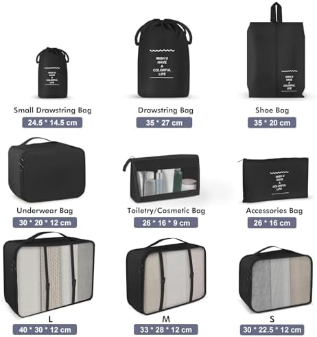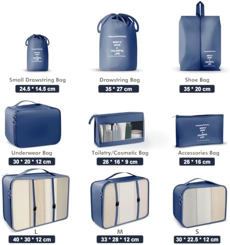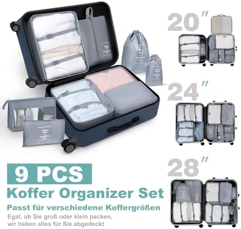 Unsere 9-Piece Suitcase Organiser Set erfüllt alle Reisetriebbedarf. Dabei sind es verschiedene Größe spezifische Taschen, eine Kosmetikkompartimentaltasche und eine Schuhtasche.