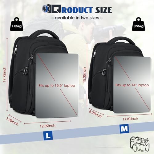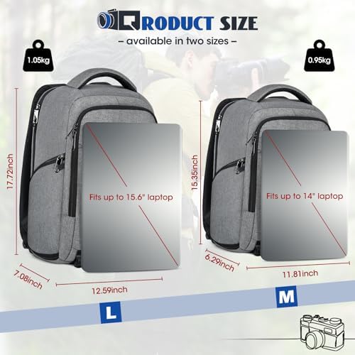 Universele Größenoptionen: Der Laptop-/Kamerarucksack ist in zwei Größen erhältlich: Mittel (30.0 x 16.0 x 39.0 cm), perfekt für Laptops bis 14 Zoll, und groß (32.0 x 18.0 x 45.0 cm), ideal für Laptops bis 15,6 Zoll. Ob Sie Fotos bearbeiten oder professionelle Equipment transportieren: der unisex Rucksack erfüllt Ihre täglichen Bedürfnisse.