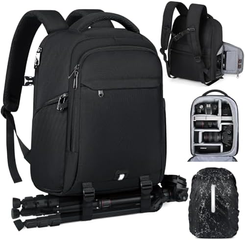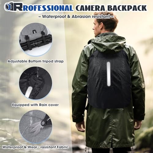 RAINSMORE Kamerarucksack Groß Leicht Kamera Rucksack DSLR SLR Kameratasche Regenschutz Schwarz