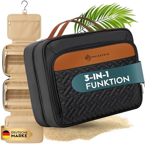 Reisefein Kulturtasche Damen Groß – Praktische Kosmetiktasche für Reise & Ordnung – 3-in-1 Kulturbeutel mit 4 Fächern &