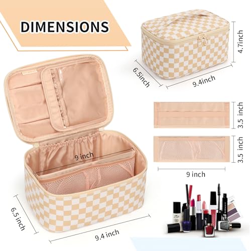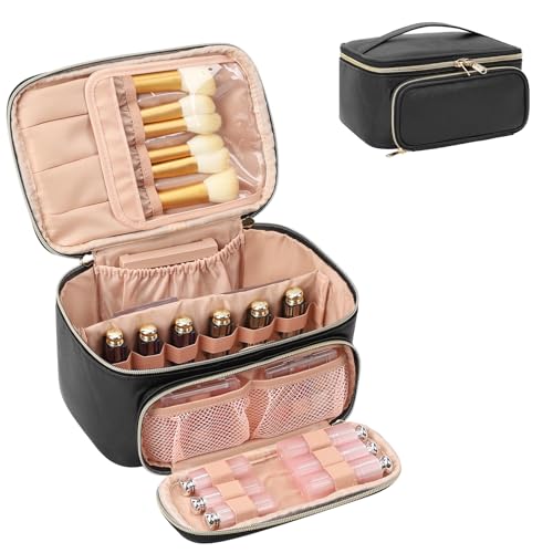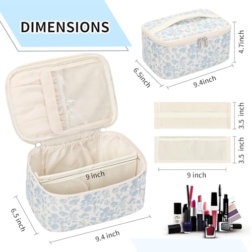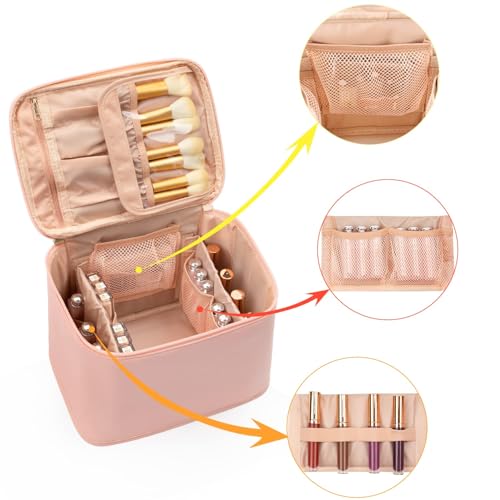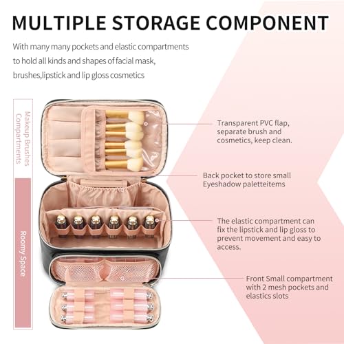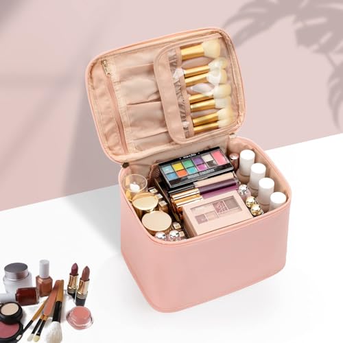 Größe: 9,4 x 6,5 x 4,7 Zoll. Portable und leichtgewichtig, perfekter Reisekosmetikkoffer für Frauen, der in Reisegepäck passt und leicht transportierbar ist. Mach dir dein Makeup überall. Die glatten zweimischigischen Verschlüsse ermöglichen einfache Zugriffe.