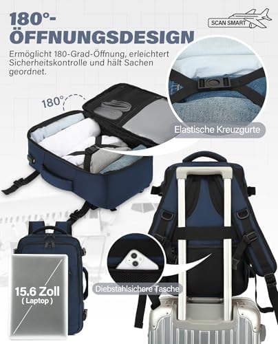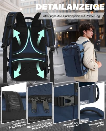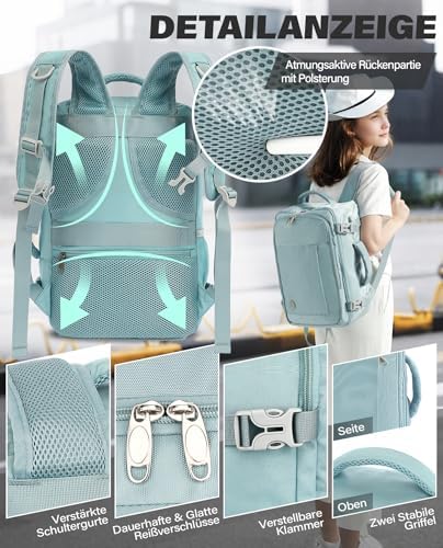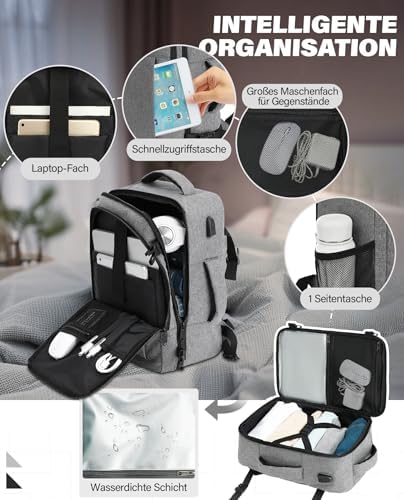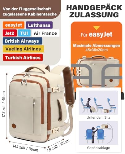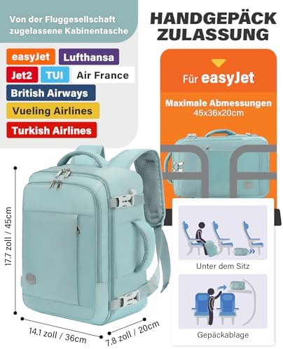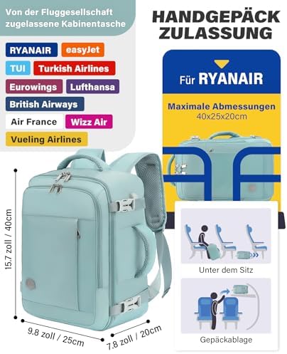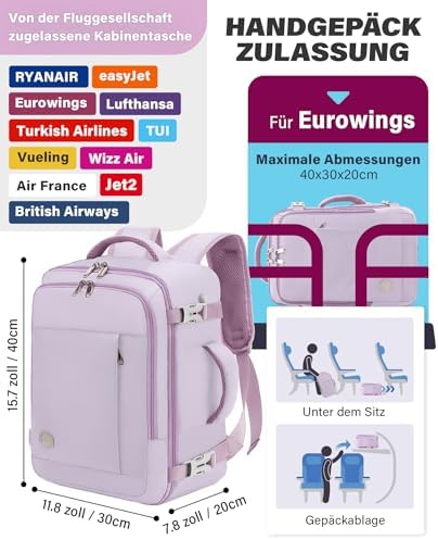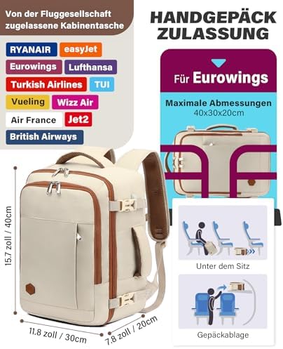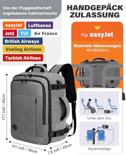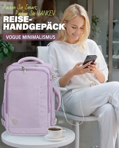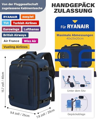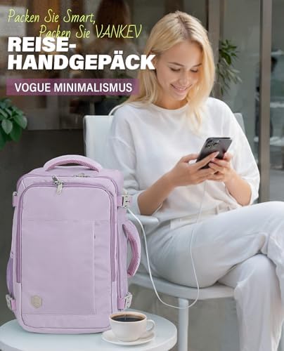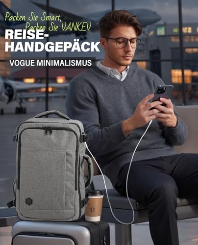 Der VANKEV Handgepäck-Rucksack hat perfekt abgestimmte Abmessungen von 40x30x20 cm und 24 Liter Volumen. Perfekt für Fluggesellschaften wie Ryanair, EasyJet, Eurowings, Wizz Air, Vueling Airlines, bietet er eine perfekte Kabinegröße. Keine zusätzlichen Gebühren für Übergröße sind notwendig.