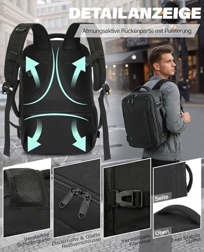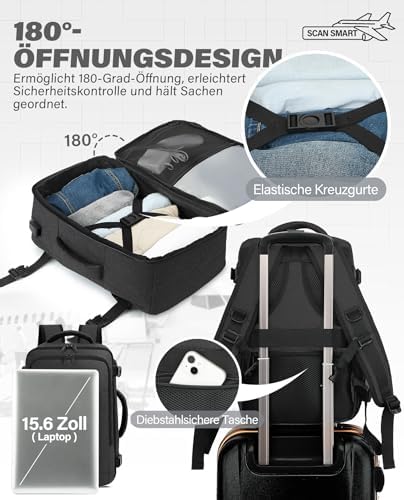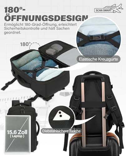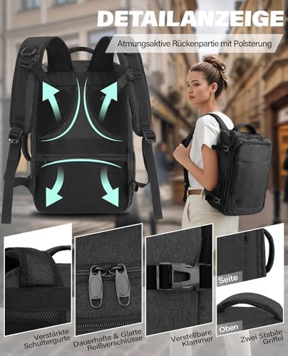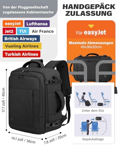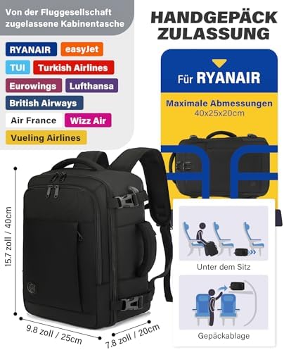 Ryanair EasyJet Eurowings Wizz Air Handgepäck 40x30x20 L Laptop Reiserucksack SCHWARZ