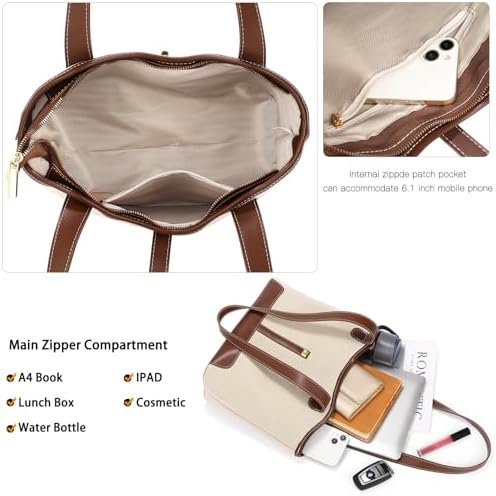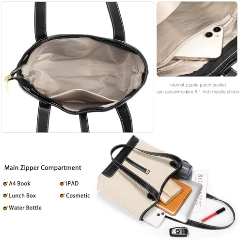 SENDEFN Einfache Handtasche Groß für Damen mit Reißverschluss und Innentasche für Arbeit, Schule und Einkauf