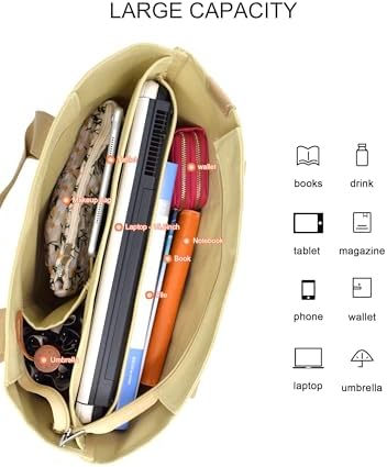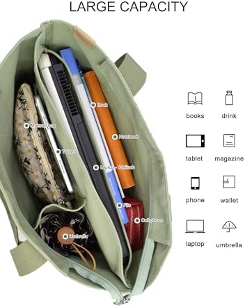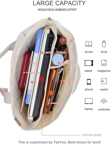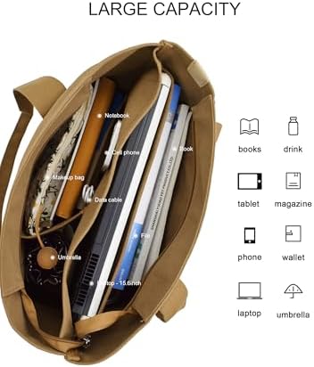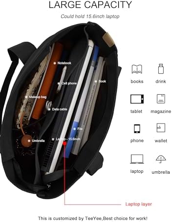 Die Tasche mit Ausmaßen von 42cm x 31cm x 16cm bietet Platz für 15,6 Zoll Laptop, Lebensmittel, Brieftasche, Handy, Schlüssel, Regenschirm, Bücher und andere Schulsachen. Sie bringt auch Platz für Tablet, Bücher, Kosmetik, Regenschirm usw. mit.