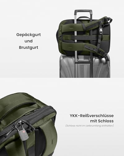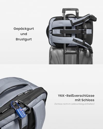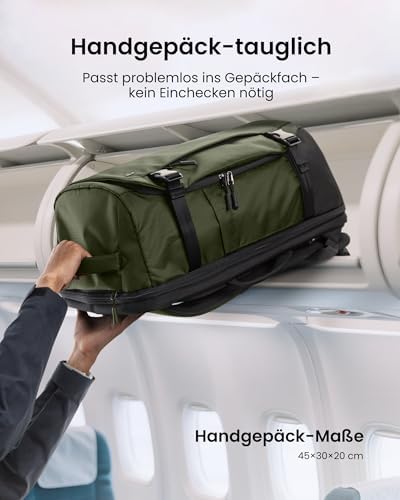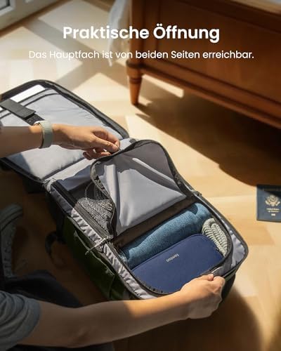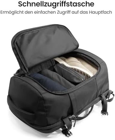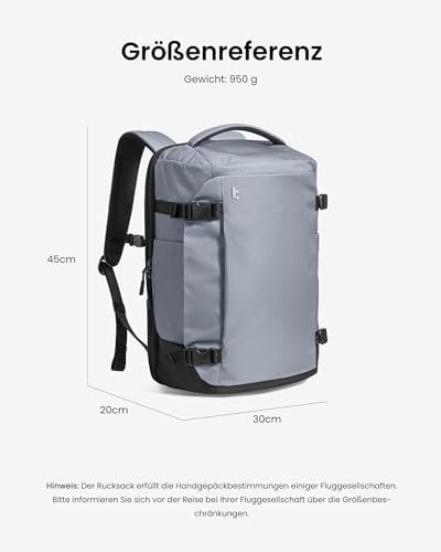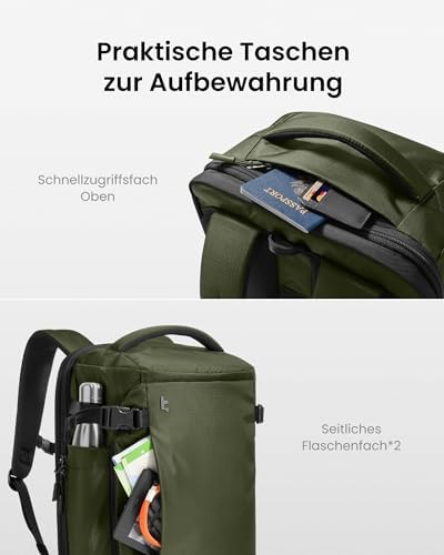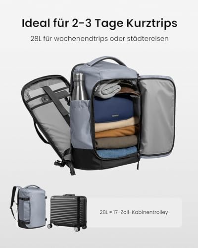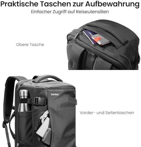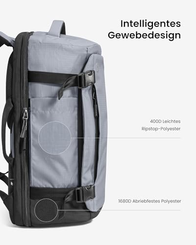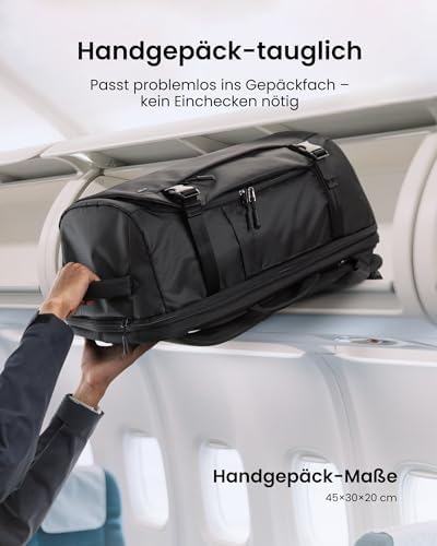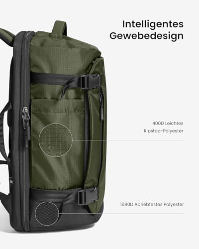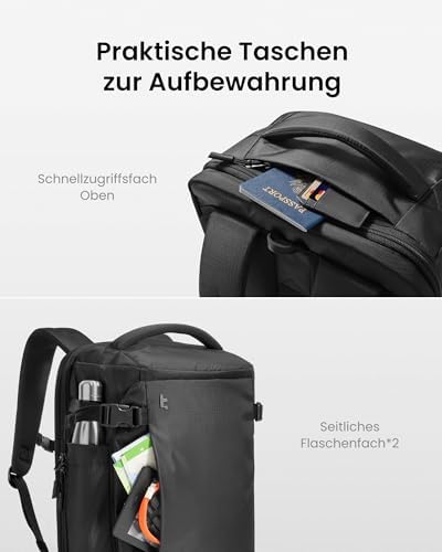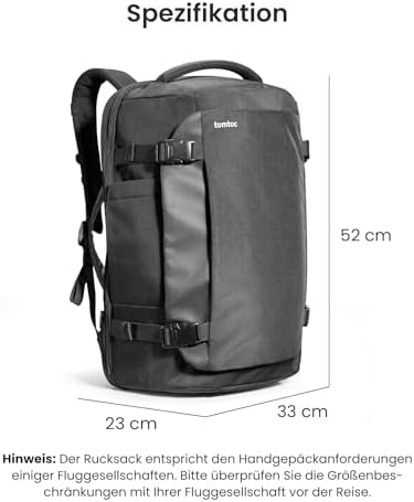 Der tomtoc Grande Traveller-Handgepäck-Rucksack bietet alles, was Sie zum Traumreisen brauchen: Platz, Komfort und umweltfreundliche Qualität.