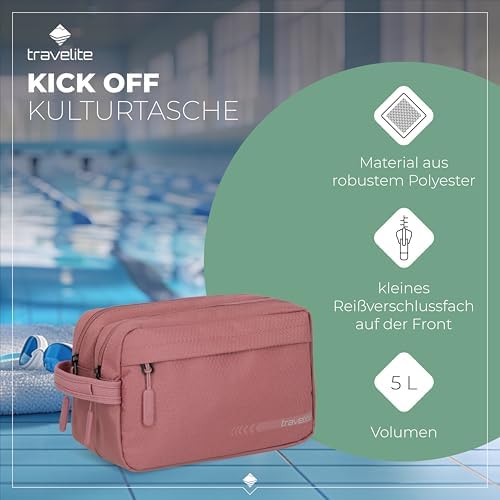 Travelite Handgepäck Kosmetiktasche Kick Off 26 cm 5 Liter Rosé – Praktische Kulturtasche für Urlaub und Sport