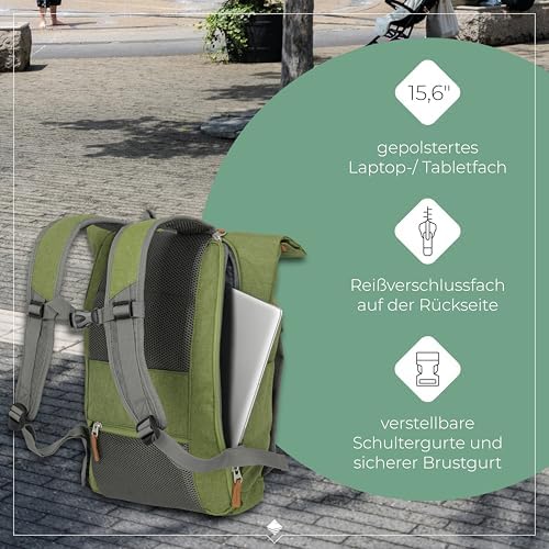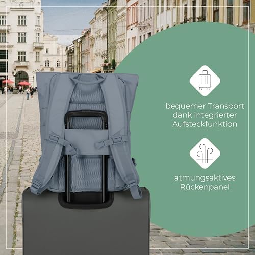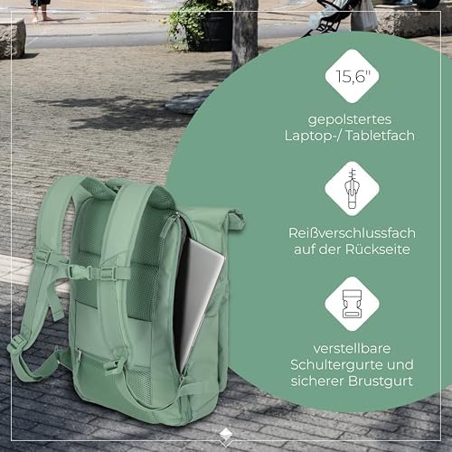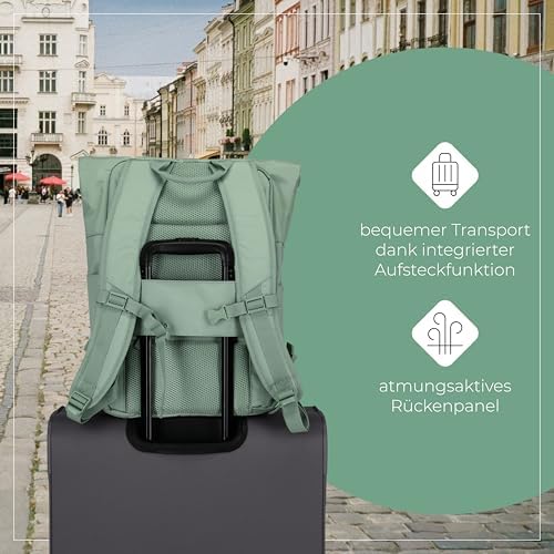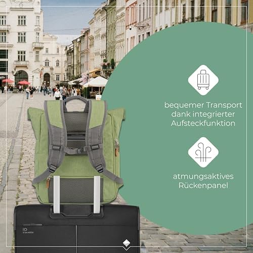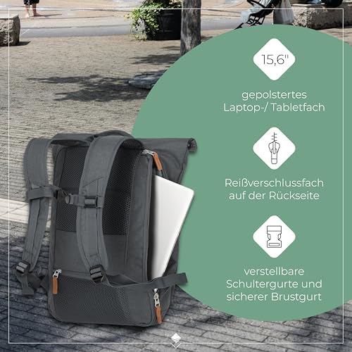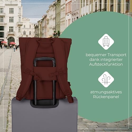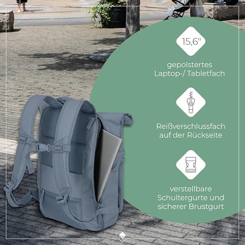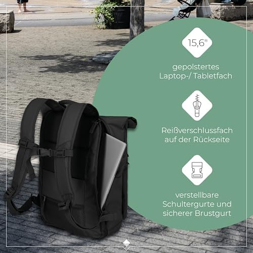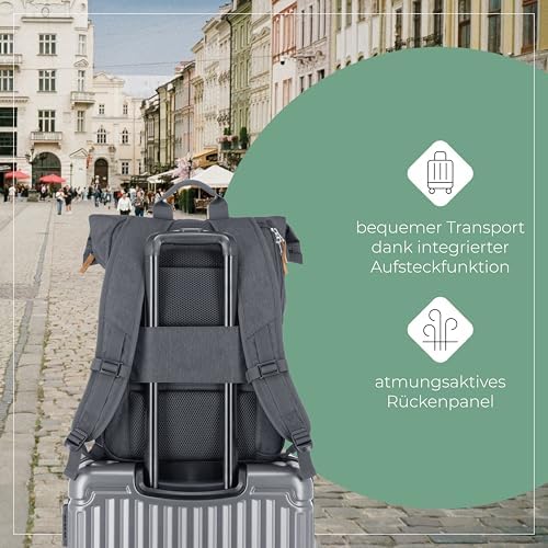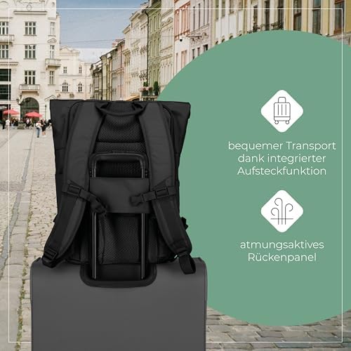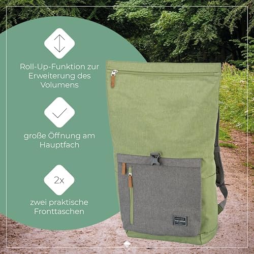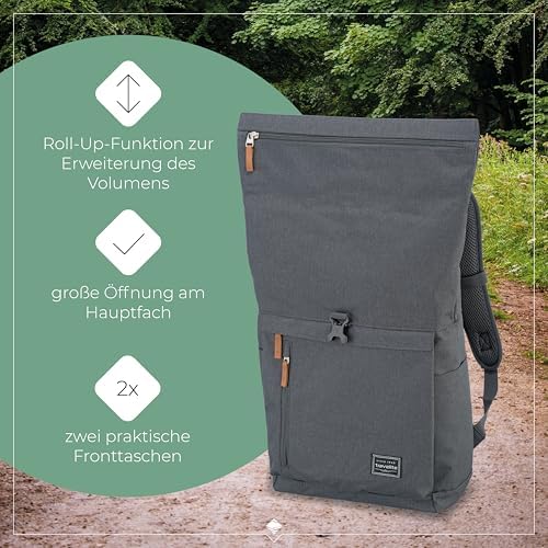 Durch die Volumenflexibilität des Rolltops ist der Rucksack vielseitig einsetzbar, sei es für Städtetrips, Ausflüge, oder als Arbeits- und Schulrucksack. Das Rolltop Design ermöglicht einen flexiblen Umfang, sodass Sie Ihr Gepäck jederzeit anpassen können.