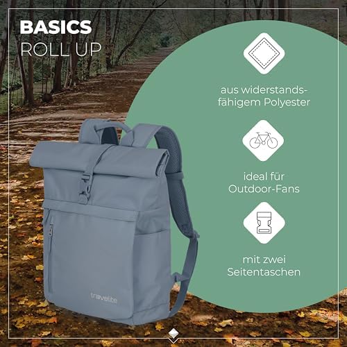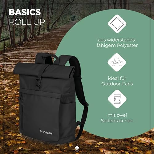 Travelite Rucksack Laptop 15,6 Zoll BASICS Rolltop Funktion 35 Liter Reiserucksack 60 cm