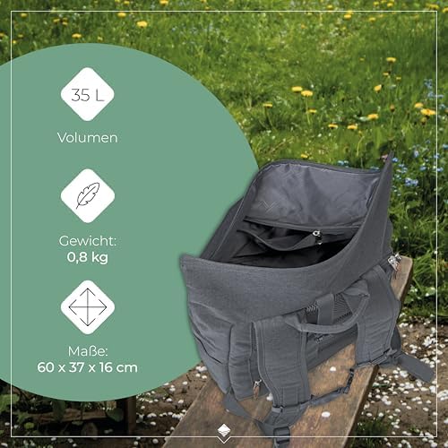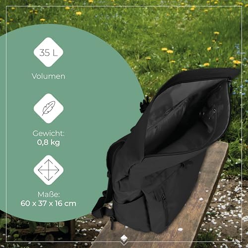 Der Lieferumfang umfasst: 1 x Reiserucksack für Flugzeug,Shellung: 60 x 37 x 16 cm, Volumen: 35 Liter, Gewicht: 0,8 kg, Farbe: Schwarz, perfekt für dreitägige Reisen.