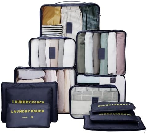 TXBOBECO 12-teilige Koffer Organizer Set für Reisefrauen bei Kurzreisen(Dunkelblau)