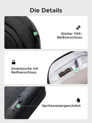 UGREEN Kabeltasche Tech EDC Pouch für Reisende mit Wasserdichten Interne Reißverschluss-Lagen