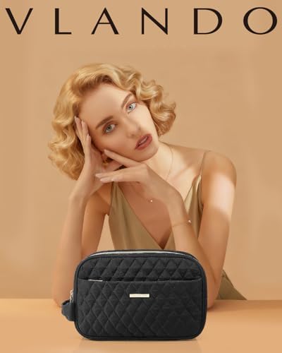 Vlando Kosmetiktasche Groß mit 3 Fächern für Frauen | VlandoPortable Make Up Tasche für Girls und Women | Vlando Kosmet
