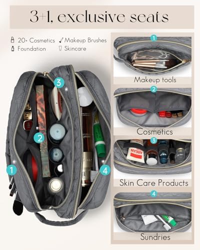 ✨【Praktisch und Super Geräumig】Alles in Ordnung! Die Kosmetiktasche bietet mehrere Ablagefächer, doppelschichtige großen Hauptfächern, 2 Steckfächern, 5 elastische Tücher, 1 versteckte Tasche mit Reißverschluss sowie ein Trocken- und Nassabscheidung Fach.