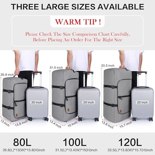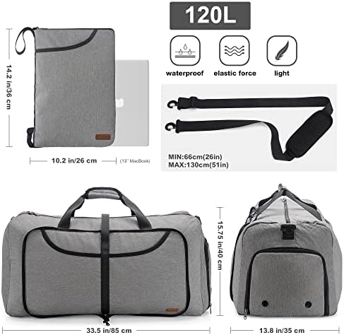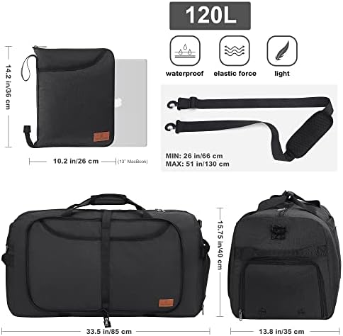 Die übergroße 120-Liter-Reisetasche bietet Platz für 8-10 Tage Reisebedarf. Ob Sommer- oder Winterkleidung, sie lässt sich leicht einpacken und mitnehmen.