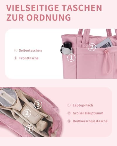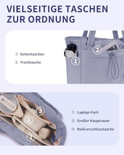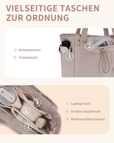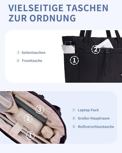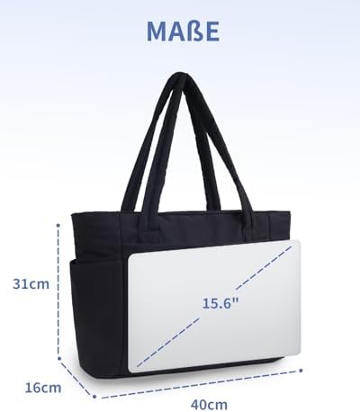 Mit einem Fassungsvermögen von ca. 20 l (40 × 16 × 31 cm) bietet diese stehende Shopper-Tasche genügend Platz für Ihren Laptop, Ordner, Lunchbox und Wasserflasche. Der sichere Reißverschluss macht sie ideal für Arbeit, Schule oder das Einkaufen.