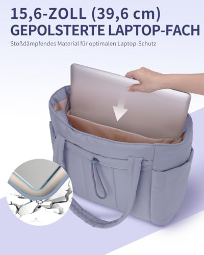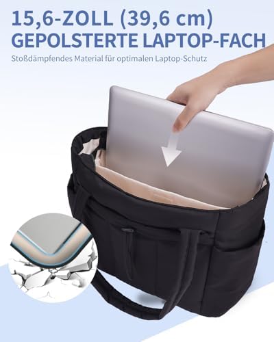 Ein separately, gepolstertes Fach bietet sicheren Transport für Laptops bis zu 15,6 Zoll. Mit insgesamt acht praktischen Innenfächern hilft diese Henkeltasche, alle wichtigen Dinge übersichtlich und leicht zugänglich zu organisieren.