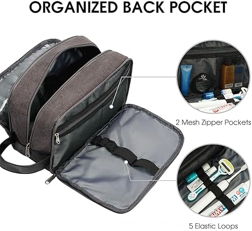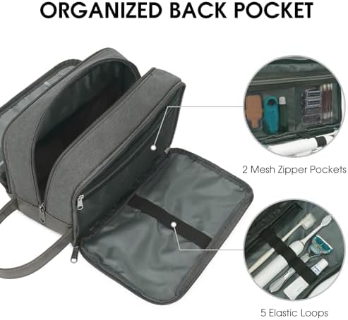 Das Design mit vollen Öffnungen erleichtert den Zugang und Platzieren von Toilettenartikeln. Die Tasche verfügt über 5 elastische Bänder, die für die Aufbewahrung von Zahnbürsten, Rasierern, Zahnpasta und elektrischen Nagelclips eingerichtet sind, sowie 2 Netzreißverschlusstaschen, in denen Sie Wattestäbchen, Masken, Stromkabel oder andere kleine Gegenstände aufbewahren können.