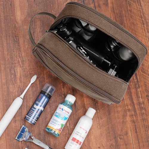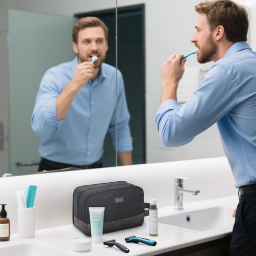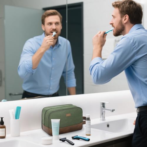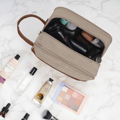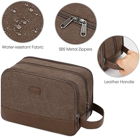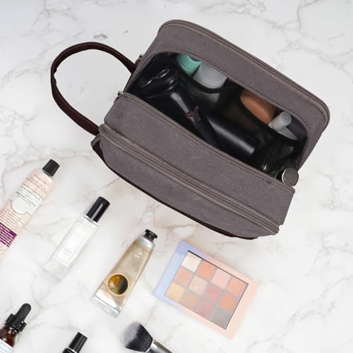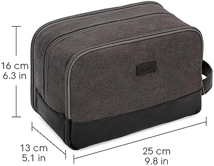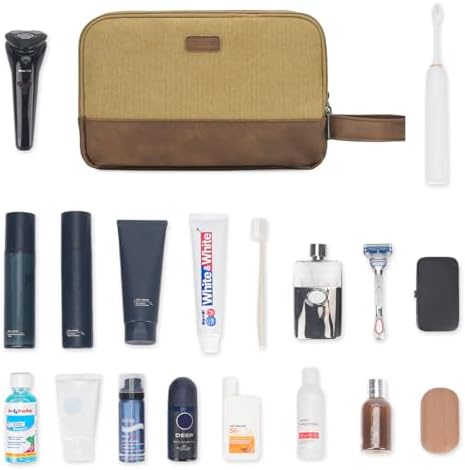 Die WANDF-Toilettentasche für Herren besteht aus strapazierfähigem und wasserdichtem Canvas und PU-Leder. Die robusten Materialien und die gut durchdachte Struktur halten die Tasche in Form. Der Ledergriff an der Seite erleichtert das Tragen und kann auch zum Aufhängen verwendet werden. Der weiche Stoff macht es angenehmer zu tragen.