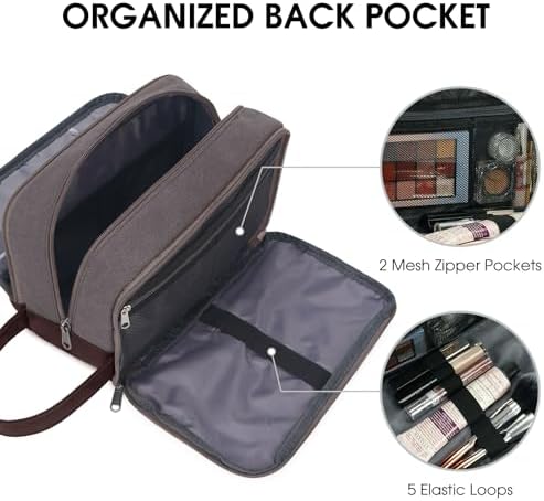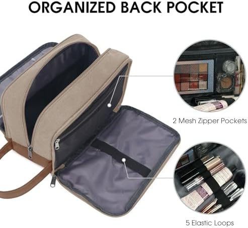 Mit einer Größe von 251316 cm trägt die WANDF-Toilettentasche zu den meisten Reisebedürfnissen bei. Es bietet genug Platz für große Gegenstände wie Zahnpasta, Gesichtswäsche, Mundwasser, Lotion, Shampoo, Rasierer und vieles mehr. Das Hauptfach mit großer Öffnung helpt, alle Ihre Toilettenartikel und Pflegeprodukte zu organisieren. Fünf interne Netzbeutel ermöglichen eine aufrechte Aufbewahrung Ihrer Toilettenartikel.