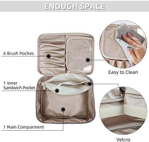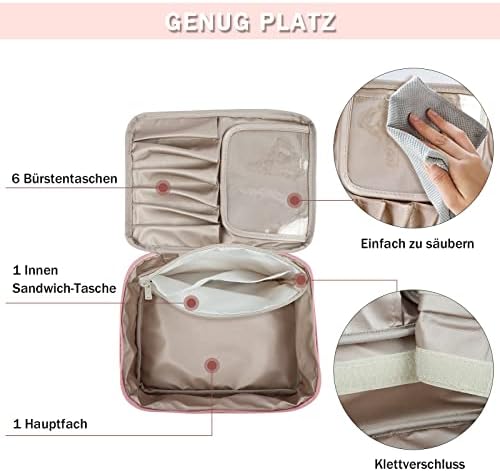 - Trennbare Tasche und separater Bürsten-Sektion: Der große Beutel verfügt über einen meißelgeschweissten Begleitbeutel, um kleinere Gegenstände wie Fingernägel, Sonnencreme, etc. aufzubewahren. 6 separierte Schalen für Bürsten, um sie vor Staub und Schmutz zu schützen.